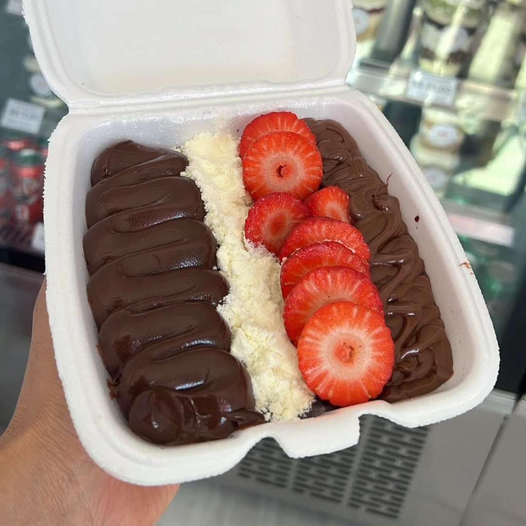 Açai 300ml com brigadeiro de ninho, morangos, uvas e confete