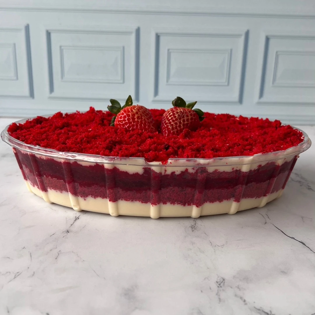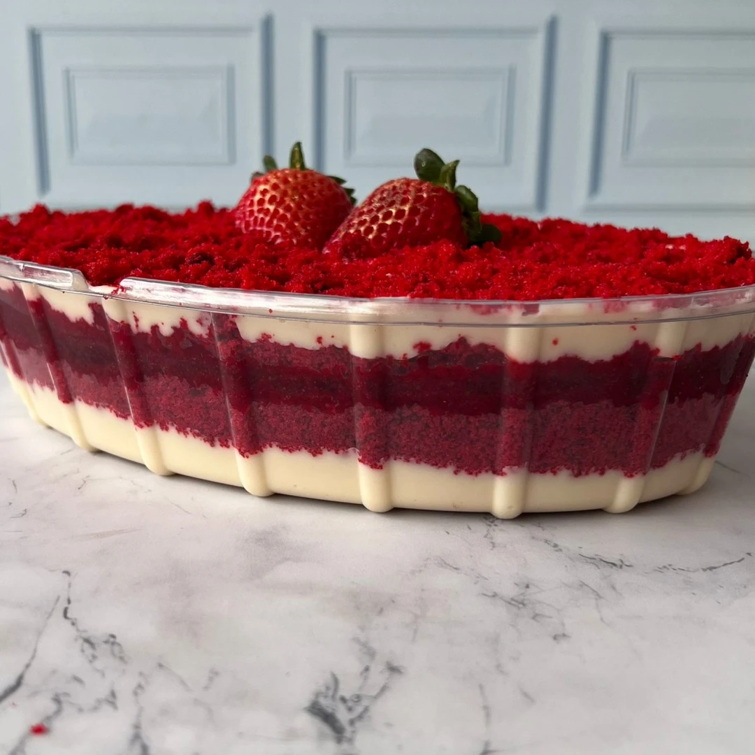Essa taça é o encanto do natal, com bolo de redvelvet montada em camadas com brigadeiro de leite ninho suave e levemente adocicado, equilibrando a acidez da geleia de morangos e um mousse de leite ninho. Peso médio 1,5kg e serve em média 8 a 10 pessoas. ** Item exclusivo para retirada na loja **